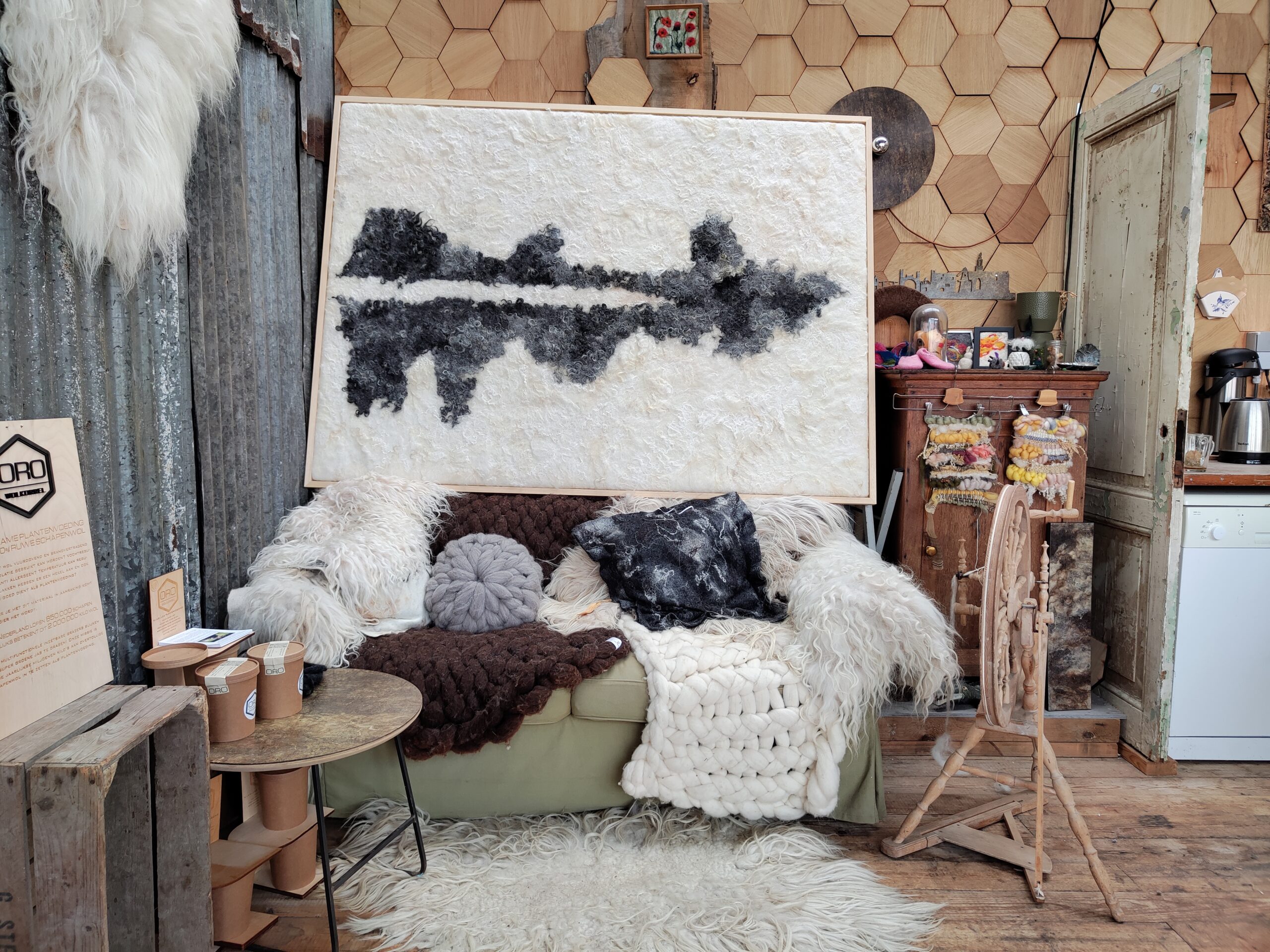 Natalie Wool maakt de wereld warmer en bewuster met duurzame, diervriendelijke wolproducten. Wij bieden workshops vachtvilten en verkopen unieke wollen artikelen zoals stoelzitjes, akoestische panelen en kunstwerken. Onze producten zijn ideaal voor bedrijven die duurzaamheid en kwaliteit waarderen. Met lokale wol en respect voor dieren creëren we tijdloze stukken die lang meegaan en volledig recyclebaar zijn. Ontdek de schoonheid en duurzaamheid van wol met ons!