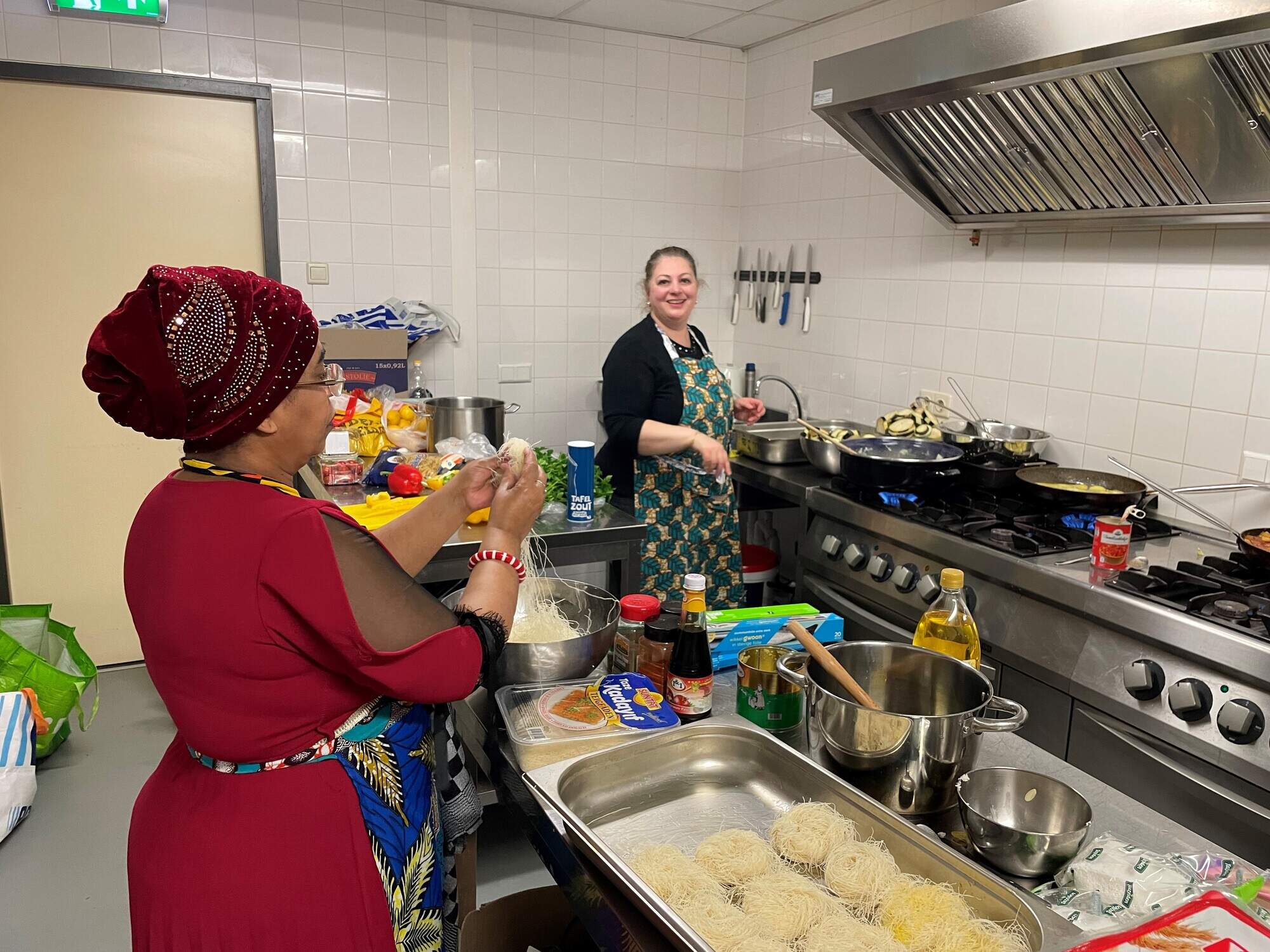 De Wereldkeuken is een sociale onderneming die een brug slaat tussen culturen door kwetsbare vluchtelingen, asielzoekers en migranten een platform te bieden om hun culinaire erfgoed te delen. In ons restaurant en via cateringactiviteiten creëren we een ontmoetingsplek waar nieuwe Haarlemmers hun kookkunsten inzetten om gasten te verrassen met authentieke gerechten. Dit initiatief bevordert niet alleen integratie en taalvaardigheid, maar biedt ook een veilige omgeving voor persoonlijke ontwikkeling. Onze cateringdiensten, variërend van lunches tot wereldse borrelhapjesboxen, worden steeds populairder in de zakelijke markt. Door samen te koken en te eten, brengen we verhalen en smaken van over de hele wereld naar de gemeenschap, en dragen we bij aan een inclusieve samenleving. Met workshops en etentjes bieden we een unieke ervaring die verder gaat dan alleen eten; het is een viering van diversiteit en verbinding.